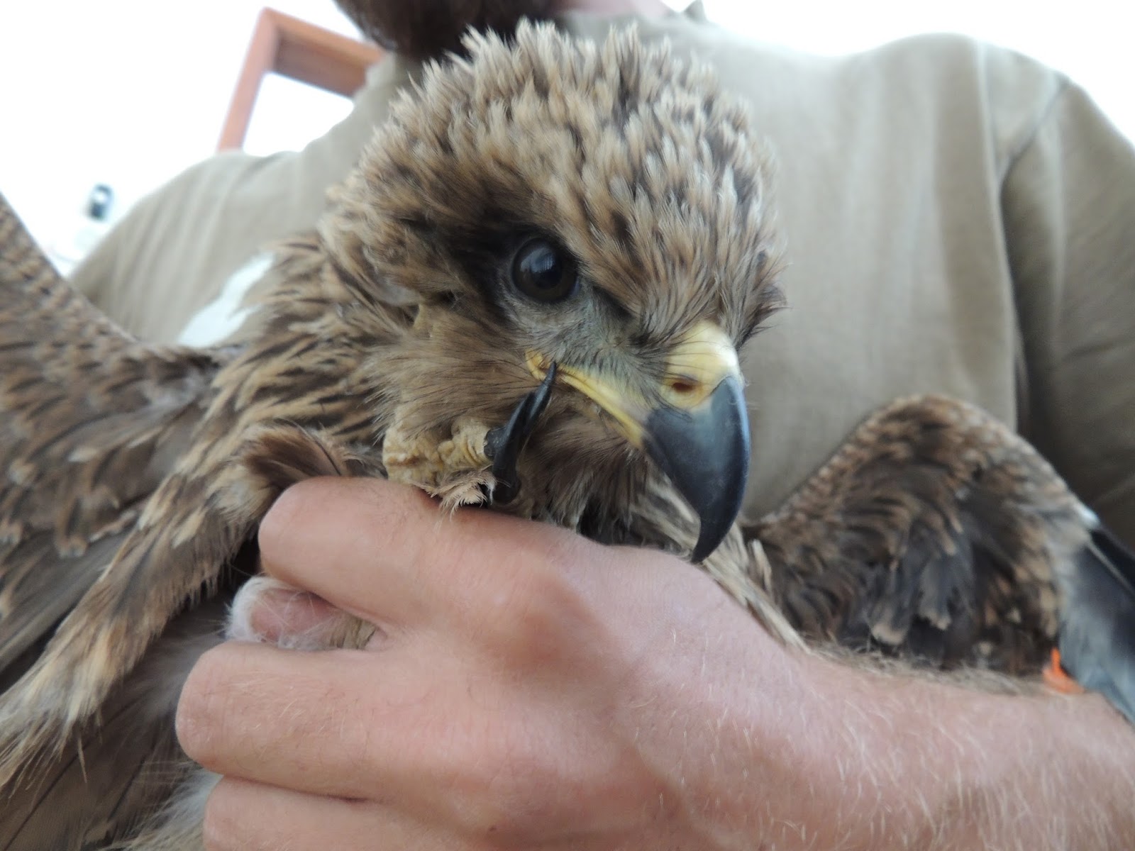 Hoje tivemos um acontecimento peculiar: A Sra. Celeste, de Algodres ligou-nos a dizer que um animal parecido com uma águia, mas mais pequeno estava caído no seu quintal e pedindo ajuda para a sua libertação. Rapidamente a mensagem chegou junto da equipa de campo que conseguiu recolher a ave e identifica-la como um milhafre-preto, juvenil, bastante debilitado. Situação recorrente em aves juvenis que ainda não conseguem encontrar alimento sem ajuda.