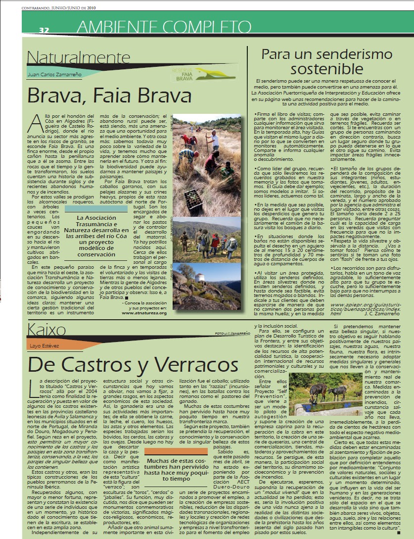 O "Contrabando" (revista rayana multilingue) acaba de lançar o seu 3º número. Entre muitas noticias interessantes destacamos uma peça sobre a Faia Brava e a ATN, escrita pelo amigo Juan Carlos Zamarreño.