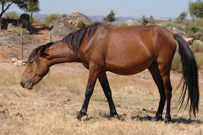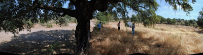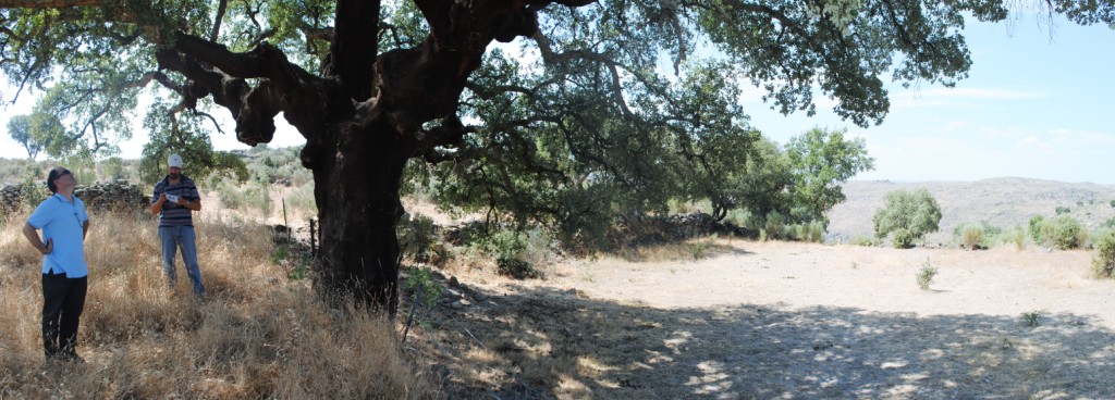 Neste contexto de discussão da gestão dos materias combustiveis nos cenários florestais, queremos deixar aqui o nosso contributo (com base no conhecimento empírico) relativo ao acompanhamento da manada de 25 garranos num cercado de 100 hectares situado dentro da reserva da Faia Brava, desde 2005. De facto para além dos garranos serem uma raça autóctone lusa, rústicos, baratos (sem conotação pejorativa), presas potenciais de um certos predadores, óptimas montadas para passeios por ravinas e barrocais, excelentes veiculos de equinoterapia, etc etc.. eles são uns verdadeiros destroçadores de pastagem natural sob-coberto e nalgumas zonas (e com uma certa carga) deixam o terreno rapado com um risco de incêndio bastante reduzido. As fotos junto ao sobreiro grande não são grande coisa mas penso que permitem mostrar a diferença entre a vegetação de herbáceas dentro e fora do cercado (fotos tiradas há cerca de 1 semana).