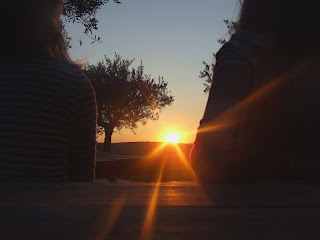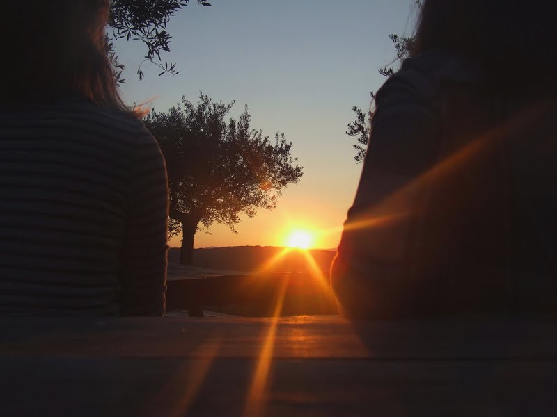 alla fine della giornata, guardando il tramonto prima di trascinarsi a letto