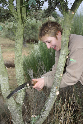 Enquanto estes novos sapadores de quatro patas não chegam, a equipa avança para o terreno, para desbastar arbustos de azinheira, podando os ramos mais baixos, ajudando as árvores a crescer em altura e protegendo-as contra eventuais fogos.