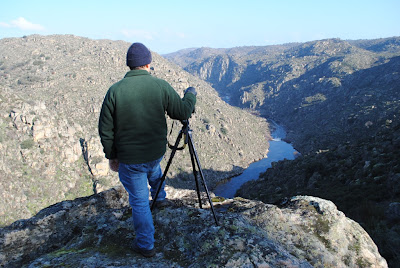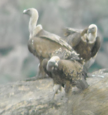 (Eduardo Realinho observa e fotografa, de uma só vez, os 3 abutres ibéricos - Grifo, Britango e Abutre-negro - e de outra vez, a rara aparição de um Grifo de Ruppell)